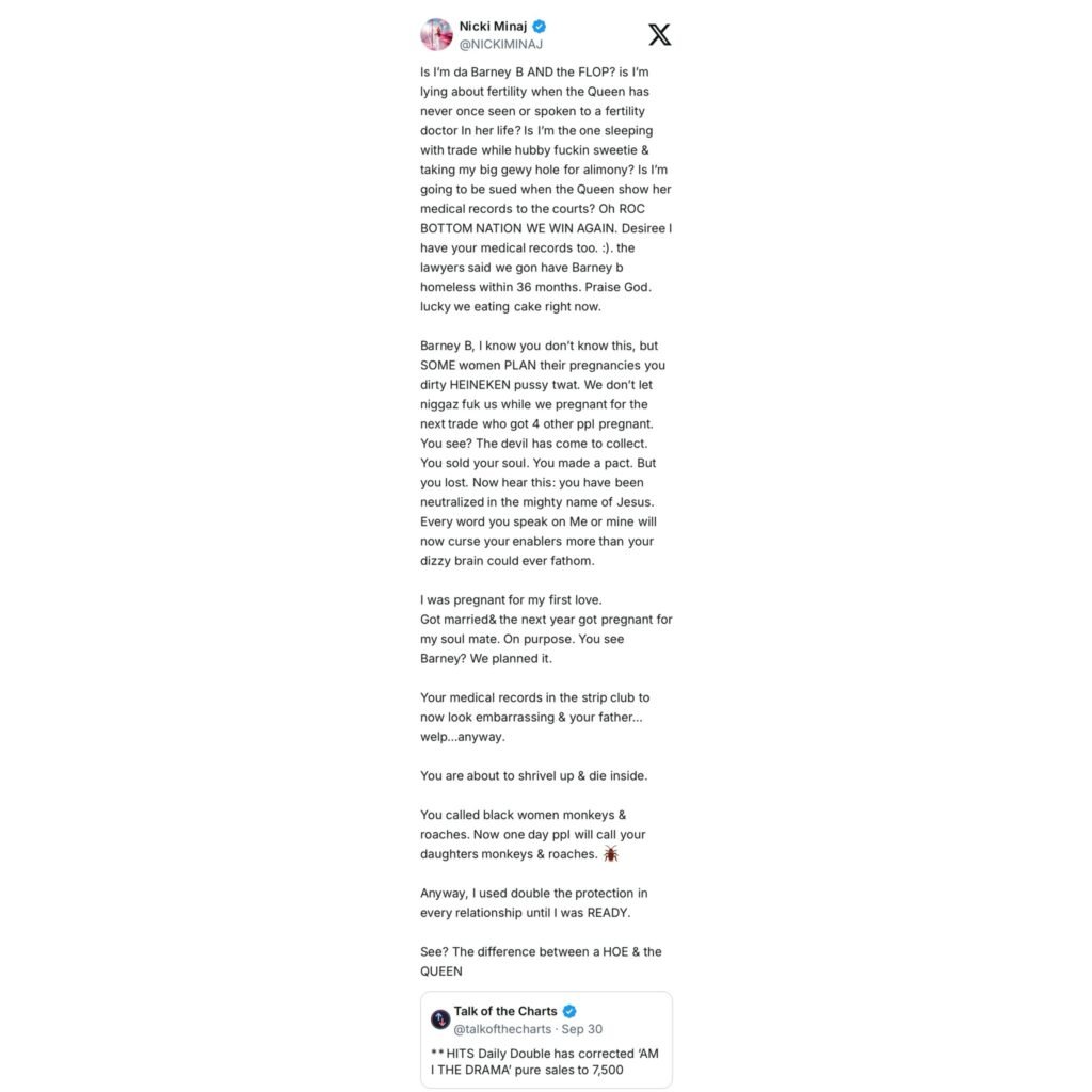 October 1, 2025 – The long-simmering rivalry between rap superstars Cardi B and Nicki Minaj exploded once again on social media this week, escalating into a deeply personal exchange that involved accusations of inflated album sales, family matters, and past controversies.