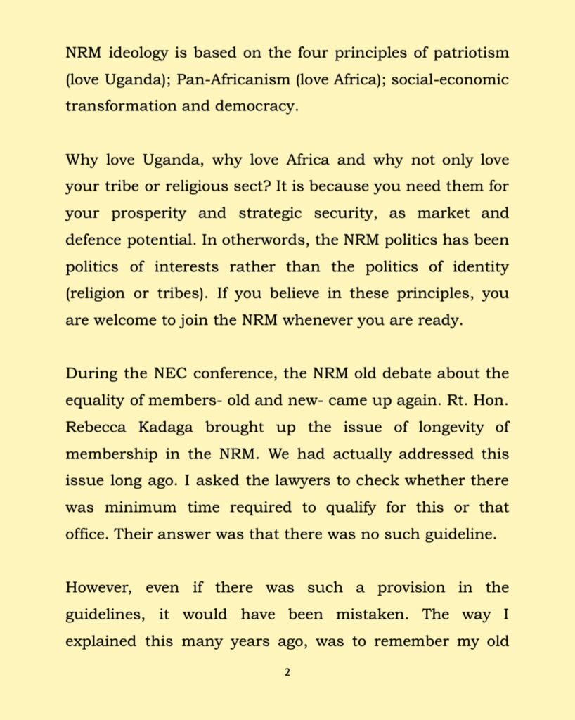 He anchored this position in the NRM’s core ideology, which is built on four principles: patriotism, Pan-Africanism, socio-economic transformation, and democracy—a politics of interests rather than identity.