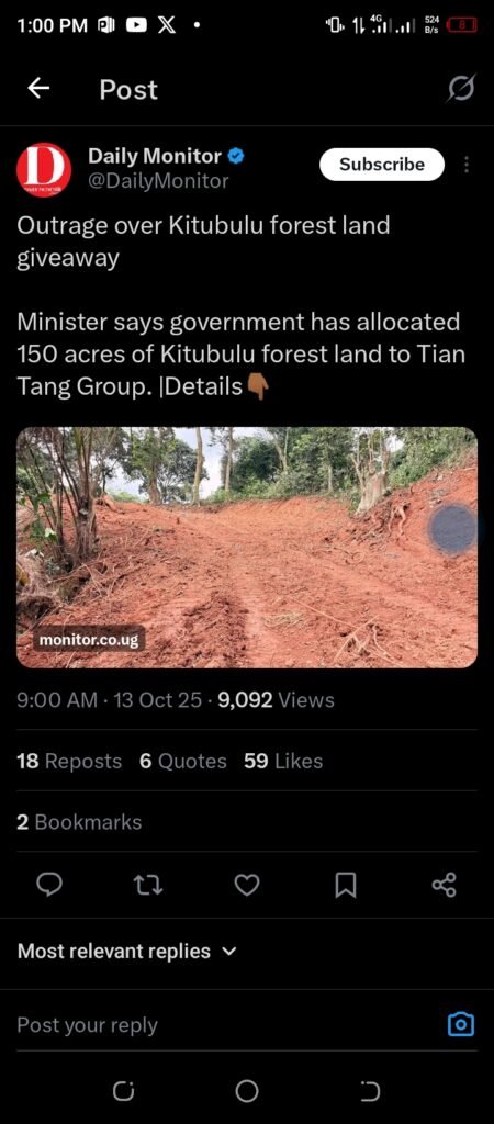 The announcement, made by a government minister and first reported by the Daily Monitor on Monday, October 13, 2025, has sparked a fierce online campaign under the hashtag #SaveKitubulu, with environmental activists and concerned citizens condemning the move as short-sighted and destructive.